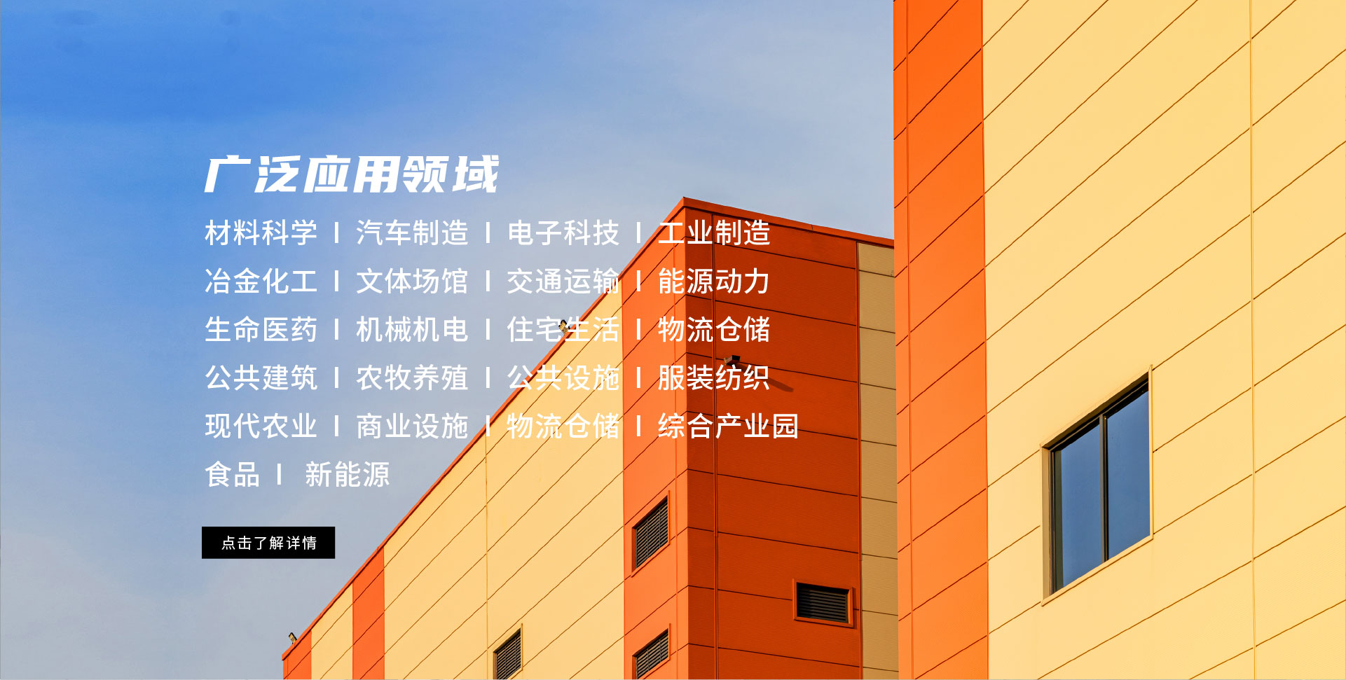 汽車制造 電子科技 綜合產(chǎn)業(yè)園 冶金化工 文體場館 交通運輸 能源動力 生命醫(yī)藥 機械機電